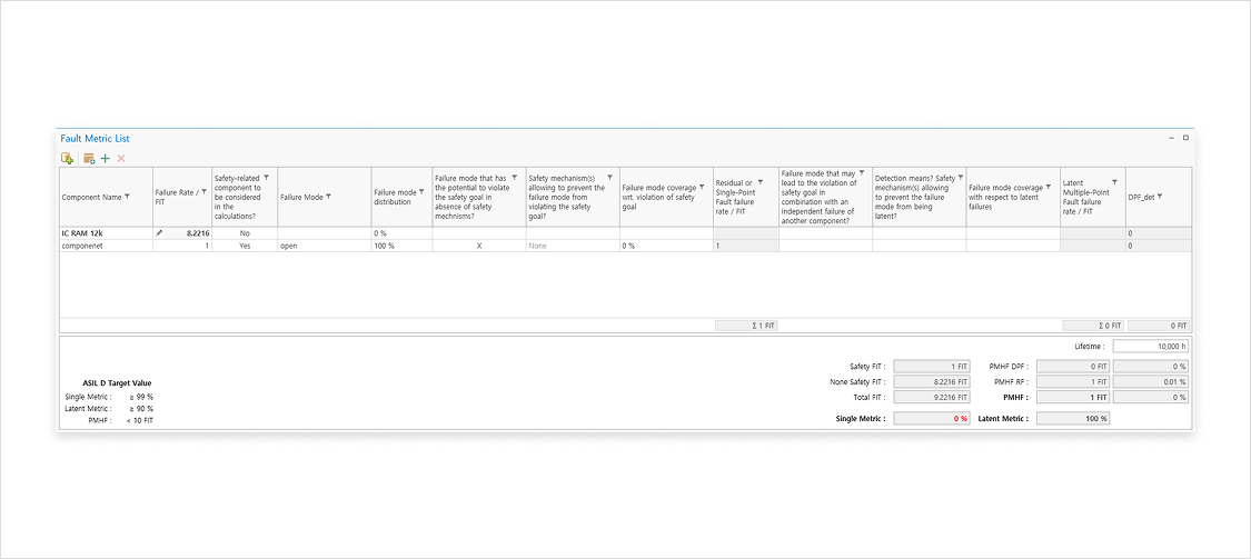 5. 支持FMEDA(根据ASIL等级自动计算SPF、LF、PMHF值)